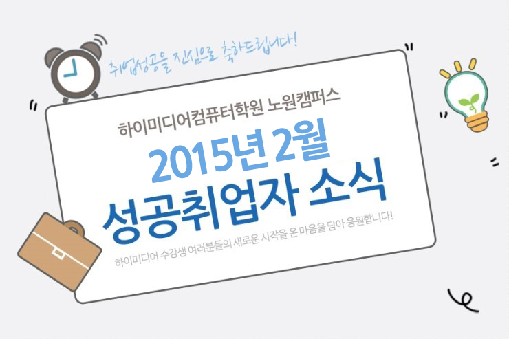 하이미디어컴퓨터학원 노원캠퍼스 2015년 2월 성공취업자 명단입니다.